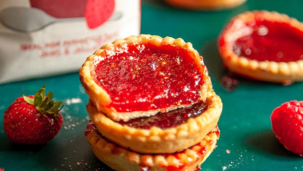 Lightly grease large muffin tins or trays, then gently press a circle into each hole. Spoon up to two teaspoons of jam into each tart, then place in the oven to bake until the jam is bubbling and the pastry is lightly coloured (14-16 minutes). Allow to cool, then remove from the tins and sprinkle over icing sugar.